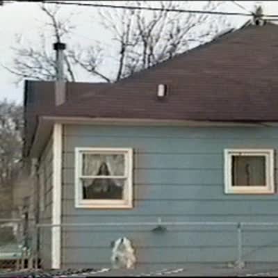 Man cuts down a tree near a trailer house. Tree falls and crushes roof. Men try to turn off electricity and gas lines to the house.