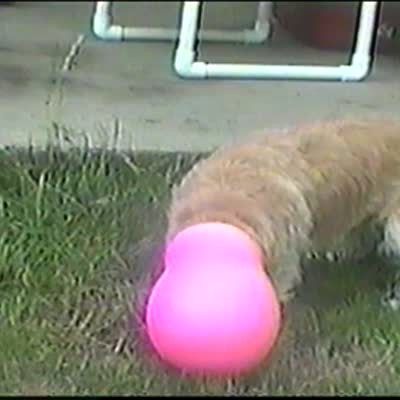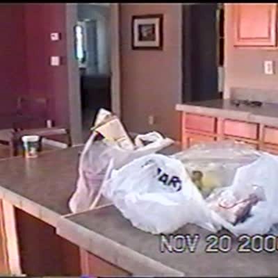 "Mutt Makes A Mess" Woman films big mess in kitchen, asks bulldog if he did it. Camera pans to another dog with a trash can lid stuck over its head.