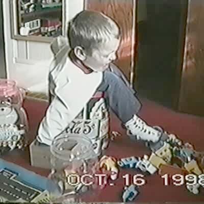 "Pick a Parent Predicament" Two women hold hands with a tot boy on a driveway, then they let go of the tot boy's hands and run in opposite directions, expecting the boy to run after one of them. Instead of going after either of the women, the tot boy runs straight ahead, takes the camera and runs away with it.