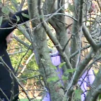 Girl tries to jump out of tree in front yard, her jacket gets stuck on a branch, girl hangs in the air.