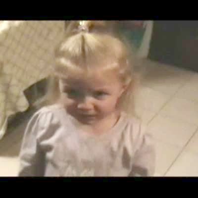 "Bush Baby" Tot girl does very good impression of George W. Bush by squinting her eyes.