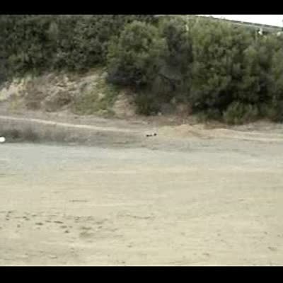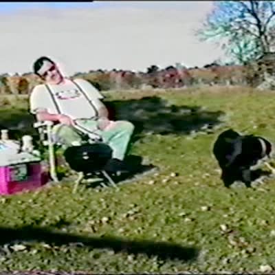 P/V Dog chews through leash and eats meat off Barbeque while man sleeps