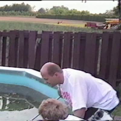 Bill Danyluk and his mom 'play act' by the pool, Bill goes in