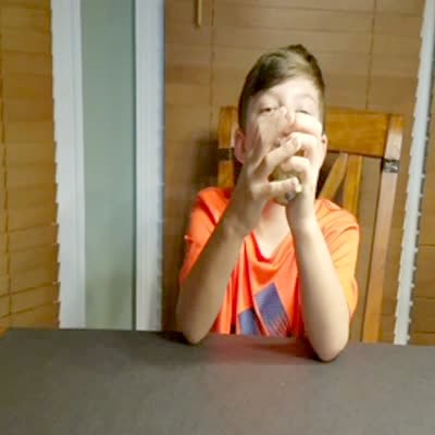 Young boy punches himself in the face to get a loose tooth to fall out.