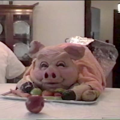 P/V Guy served dinner says "I Hate Pork", dinner is a talking pig who contradicts him