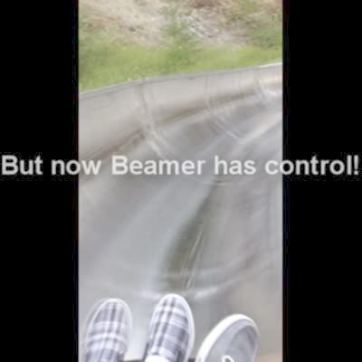 A boy goes down a bobsled ride with his dad and gives him a heart attack by going too fast.