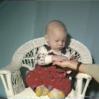 Jordan's Magic hair Formula' First haircut segment. Baby wears toupee after foam is put on head.
