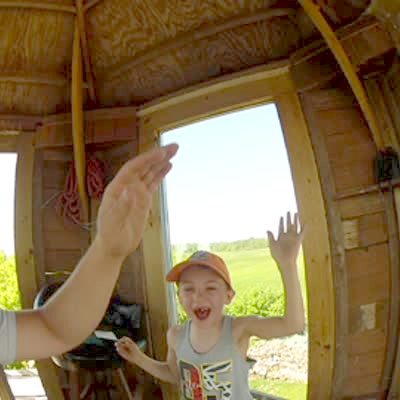 Baby is pulled in walker & toy car - keeps zipping through frame