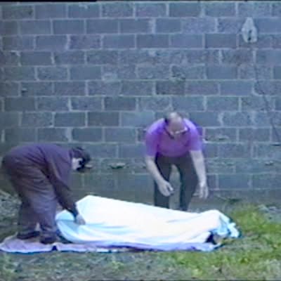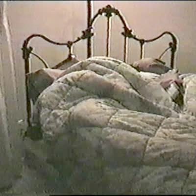 Split screen horror spoof. Crab jumps on sleeping man's face and eats his head. (odd visual)
