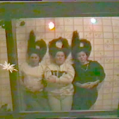 Girls (via mirror) spell out "we love you bob" with their hair.