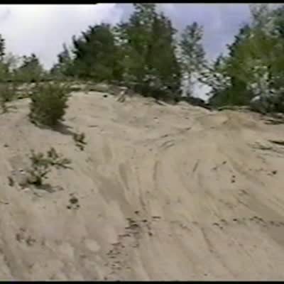 Man in a hat and underwear skis down a sand dune and crashes hard at the bottom