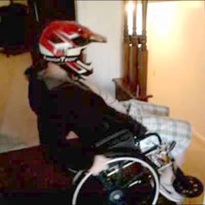 A tot boy has a protective cup put on him and then he tests it by running into things indoors.