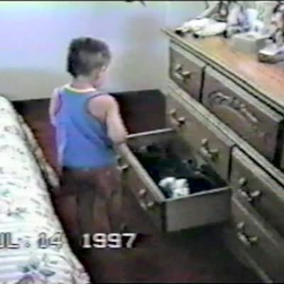 Boy narrates & tapes baby bird on the ground, it fell out of the nest. Boy picks up bird, videos it, screams & runs. Mother bird attacks boy off camera, you never see it or find out why boy screams.