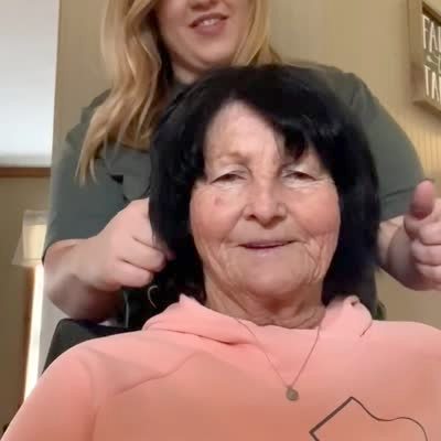 A woman pulls the invisible string prank on her senior grandmother who then gets up and smacks her repeatedly.