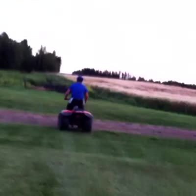 Teen boy goes on 4 wheeler goes too fast, flies over handle bars and lands in water.