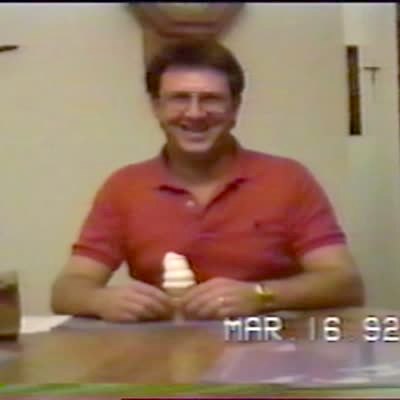 Man eats entire soft-serve ice cream cone in one quick bite.