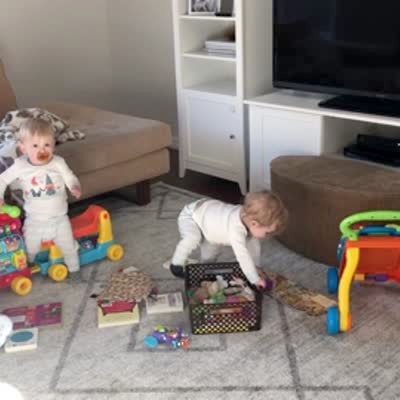 A woman asks her tot sons who is stinky and both boys raise their hands.
