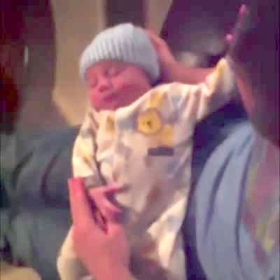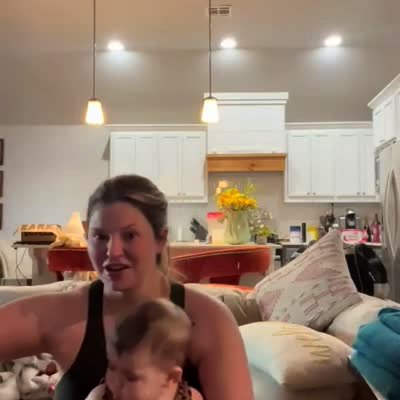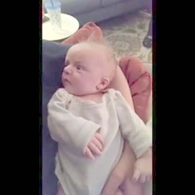 A man says to a baby: "raise your hand if you want your diaper changed", and the baby raises its hand, in the living room.