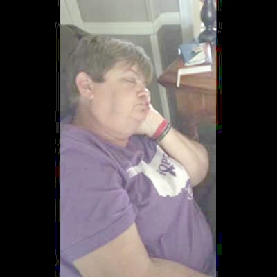A woman snores/ blows raspberries while she sleeps in a chair.