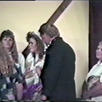 GIRL SQUEEZED BRIDE Wedding reception, little girl squeezes bride's breasts.