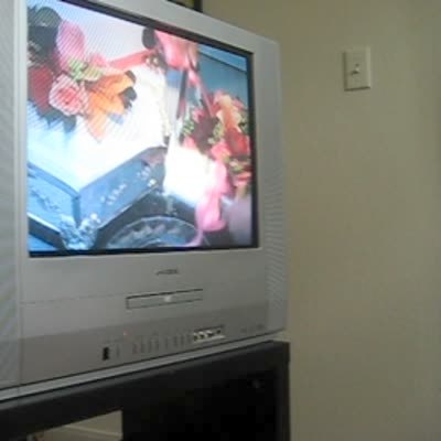 Tot girl cries when she sees a video of her mom and dad shoving wedding cake in each other's faces during their reception.