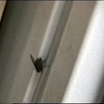 "Fly In The Fridge" Big fly has one leg caught in refrigerator door. It rips its own leg off and flies away.