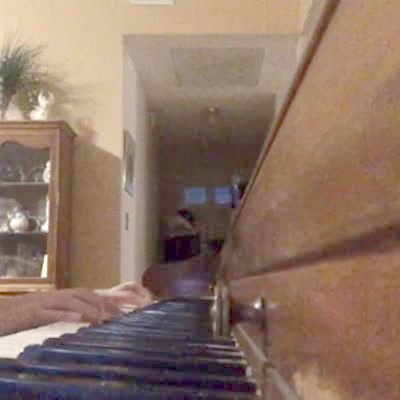 A young boy plays Beethoven on the piano. Two teen sisters walk in and dance in the background to annoy him.