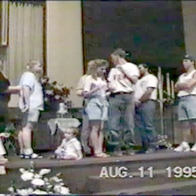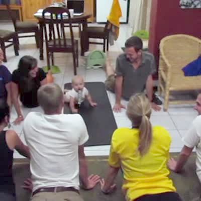 Baby boy "does" exercises with a group of adults. This was a single shot, non-rehearsed, spontaneous baby workout.\\r\n