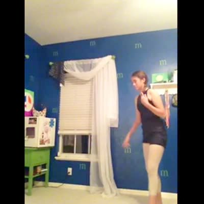 A teen girl rehearses a dance indoors, farts, looks shocked, then dances more.