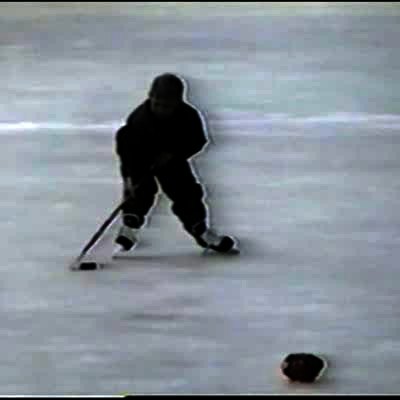 Boy playing hockey scores a goal, throws his hockey stick up in the air. It falls & hits his head.