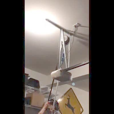 A man curses and falls in the garage when a hummingbird bird flies back in through a window as he releases it.