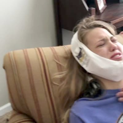 A teen girl being driven home from dental surgery by her mother becomes upset while still being under the effects of anesthesia. She tells the woman driving the car that they "cut her bones out" and she wants to "get her bones back." Her mom clarifies that it's her teeth that have been removed.