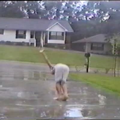 Kid calls for more rain & gets it, loud thunder clap scares him.