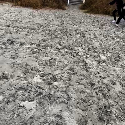 Two teen girls run away from a flock of seagulls on a beach. One of the teens has a bag of food in her hand. The flock quickly envelopes the two teens, and they retreat.