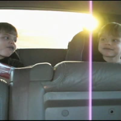 "The Tart Twins" Twin boys eat sour candy at the same time. Boys like it at first & then they both start crying when it gets too sour. In the back seat of car on road trip.