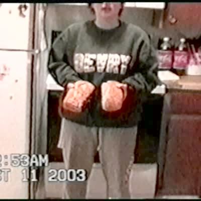 Woman bakes bread, it comes out hard as a rock. She drops it on floor to demonstrate. Date on screen 2003.
