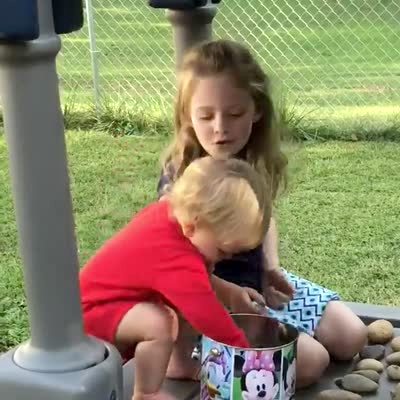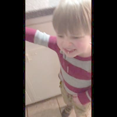 A tot boy tells a woman that "Bad Cooper" threw rocks in the grass yard and calls himself "Good Cooper." Then she asks if he should go to time out and he says "yeah, where is Bad Cooper" and the woman says "I'm looking at him." The boy turns and looks at her and says "me!?"