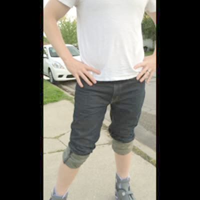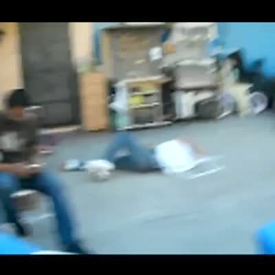 Man on rollerblades wearing only US flag shorts gets towed by a truck in the street, he trips and crashes hard. Gets road rash. Long for edit. Bonehead.