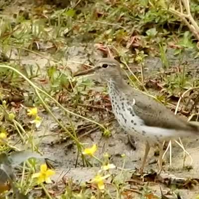 A man yells while he trips and falls next to a ladder in a yard, then a woman comes out of a trailer and asks him where he is, but she looks in the wrong direction. Security footage.