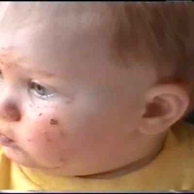 "I Dream of Cleanie" Tot girl with food / pasta sauce on her face really wants a bath, keeps repeating it to mom. "In the bath?" high chair