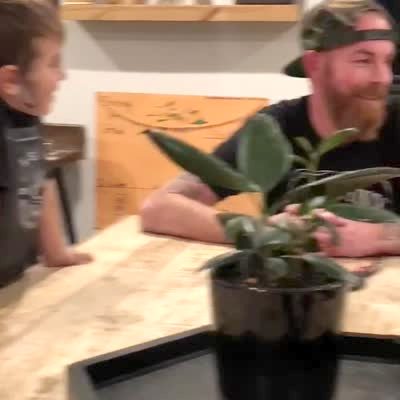 A young boy asks Alfonso for more scary videos, then another young boy and a woman jump out to scare the boy in the house.