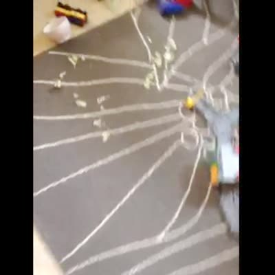 "She Wrecks the T-Rex" A young girl sits next to a broken dinosaur toy and says that the toy just broke and she didn't do it. The mom says that the scissors just happened to be there and asks the girl if she cut off the dinosaurs head. The girl says no and that the toy just broke.