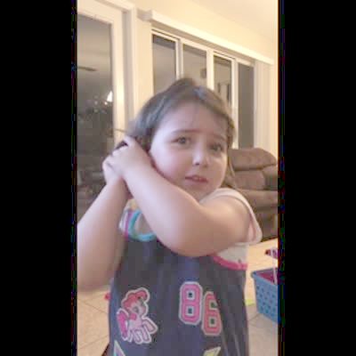 Young boy cuts big patch of hair off his own head.