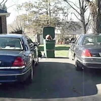 Teen boys shoot various basketball trick shots outdoors. At 0:50 they shoot one with a see-saw by jumping on the opposite end from the ball. At 1:10 they both stand between basketball hoops facing away from them, score trick-shots at the same time, and shake hands. At 2:40 they roll the ball along the roof before it rolls off and goes into a hoop.