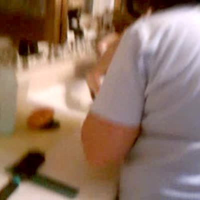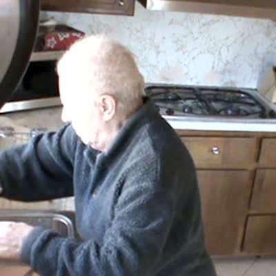 Man tries to prank Grandma by breaking the sink. She isn't fooled and keeps calling him a son of a bitch. Failed practical joke.
