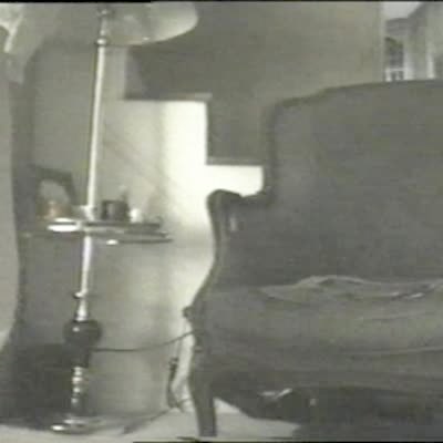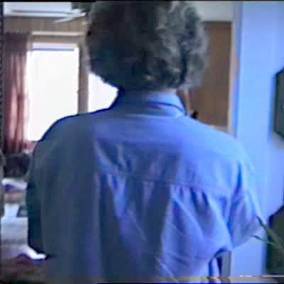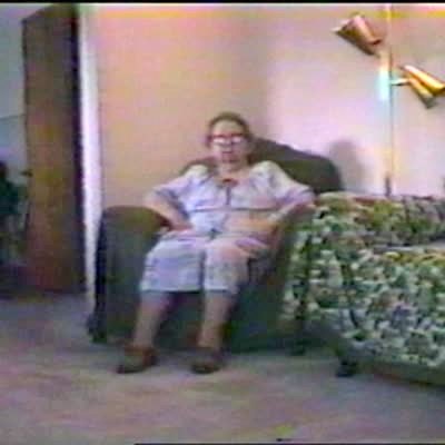 "Laser Pointer Lady" Senior woman sits on a chair in a living room and screams as someone points a laser light on her leg. She is trying to brush the light off of her, confused. Practical joke.