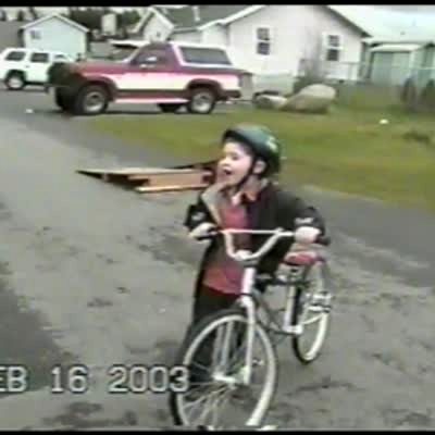 Older woman on bike goes over a ramp and falls over bike. *with recovery