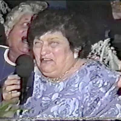 AA: Wishes. Old lady (2nd woman) is asked to make wedding wish, is confused by microphone says "what's this?"