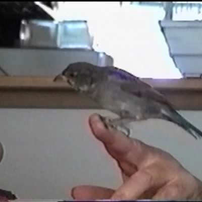 Old woman lets bird pick at her teeth. Bird bites her nostril and sits on her face.