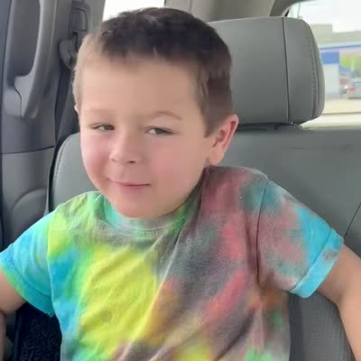 A man in a car has a young boy repeat a series of lines. When they say "I'm getting a shot" the boys face changes and he says "A shot?" and the man says "yes" and the boy screams "no!" and covers his eyes.